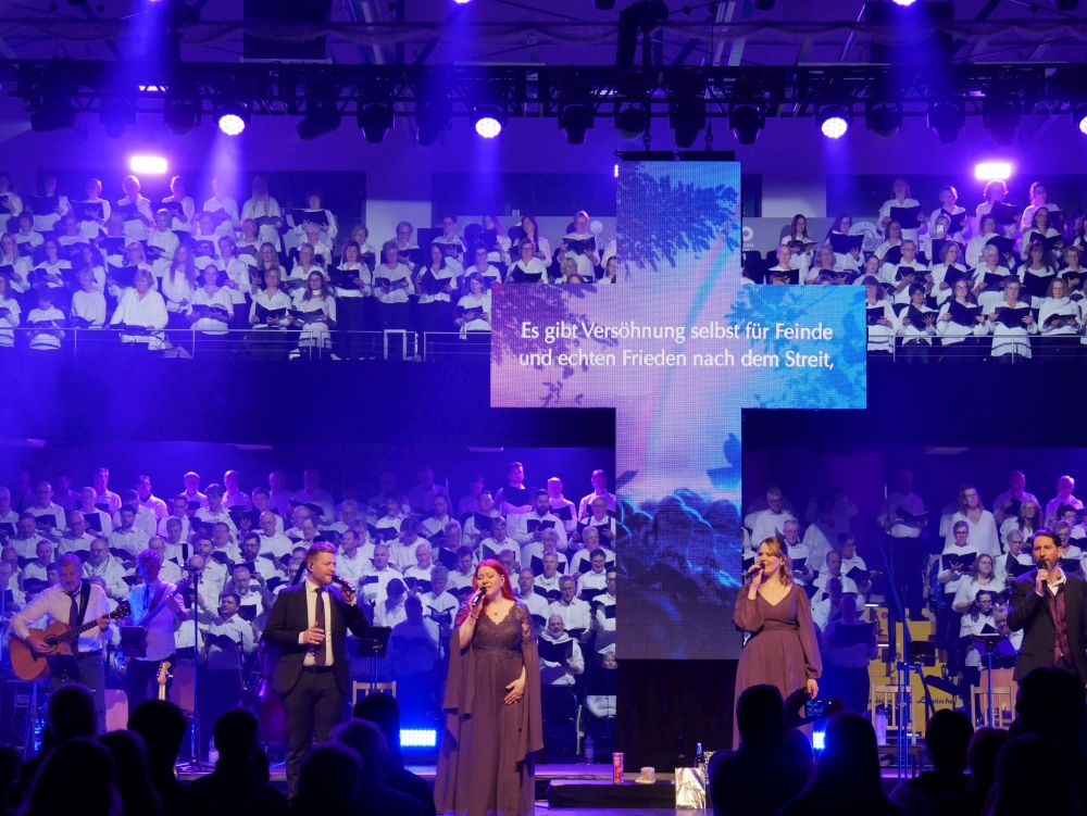 Der Hauptakteur ist der riesige Chor, der unter dem Dirigat der regionalen Chorleiter Gregor Schwarz und Peter Stolle in bester Textverständlichkeit und klanglicher Transparenz ins Licht trat. Eingängige, teils bewusst einfach gehaltene Melodien ermöglichen es auch Laiensängern, Teil des Großprojekts zu werden. Szenische Symbolhandlungen oder Regengeräusche der Choristen erzielten effektvolle Wirkungen.